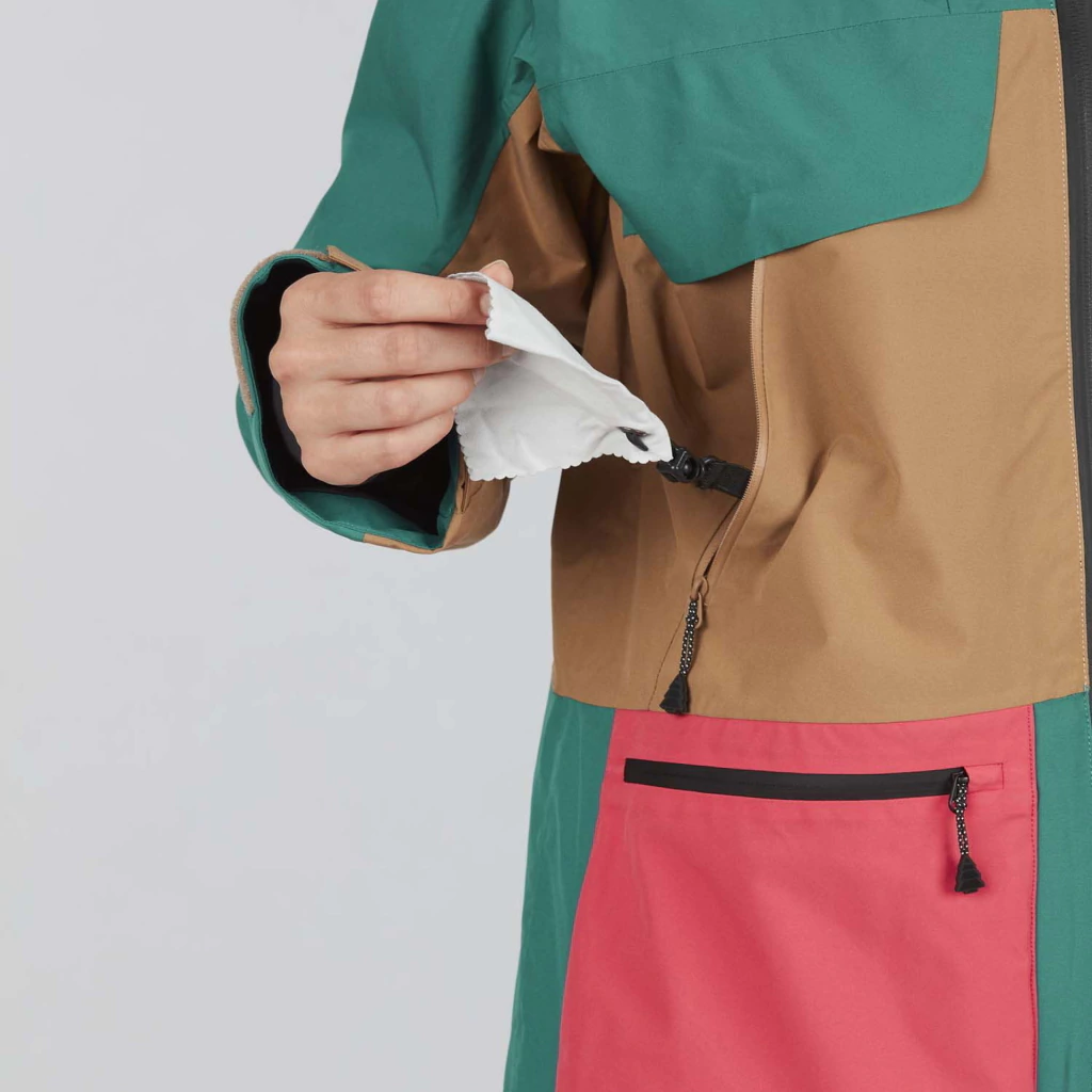 Sistema de secado térmico diseñado con forro Coremax tricot 230 g/m2 cuerpo y manga, forro de capucha de tafetán de poliéster reciclado ligero.