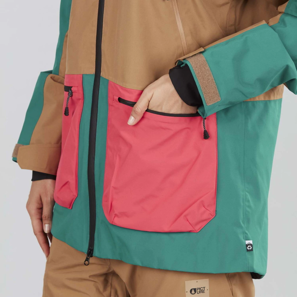 Bolsillos en el pecho con cremalleras impermeables debajo de la solapa