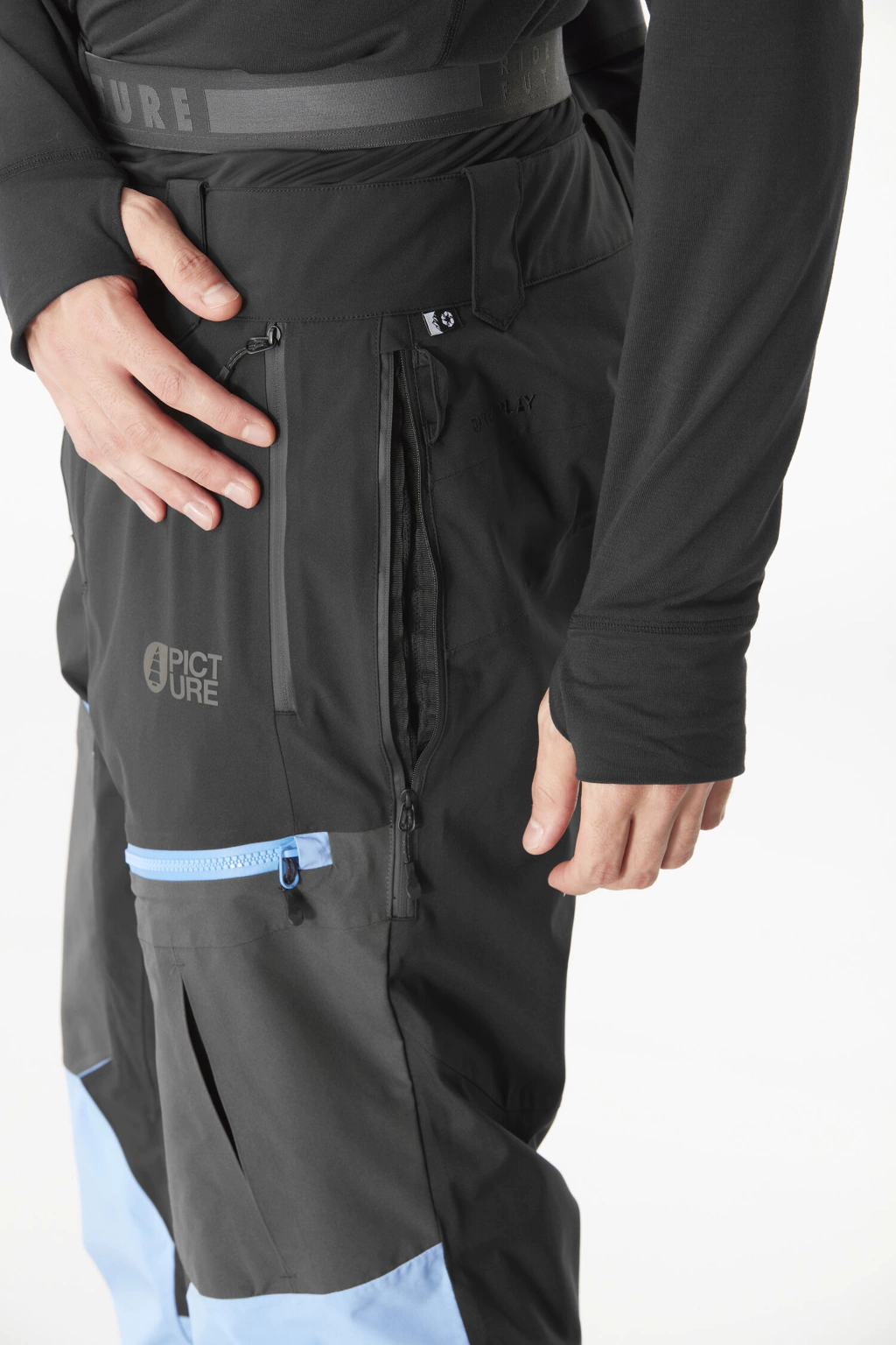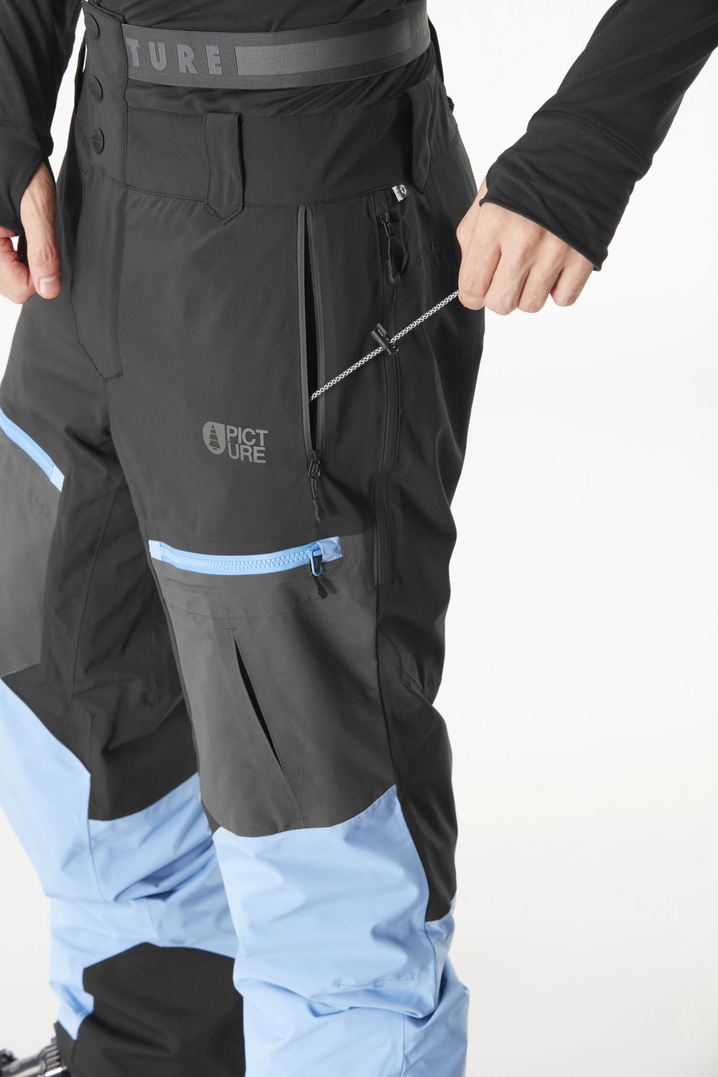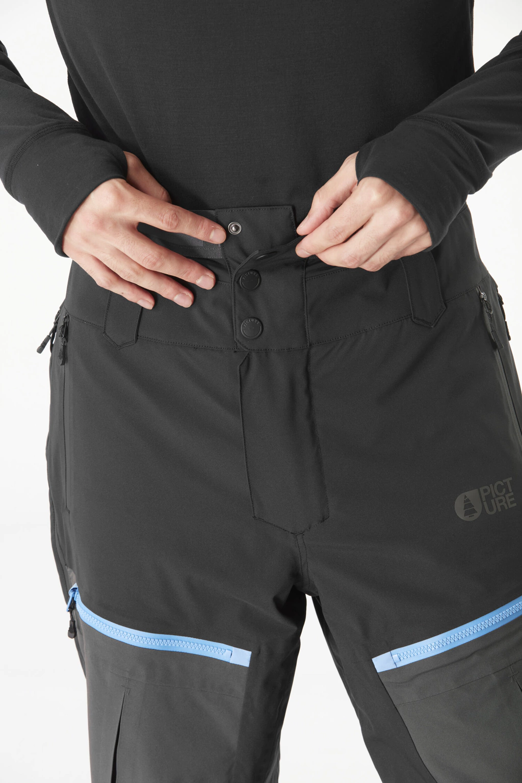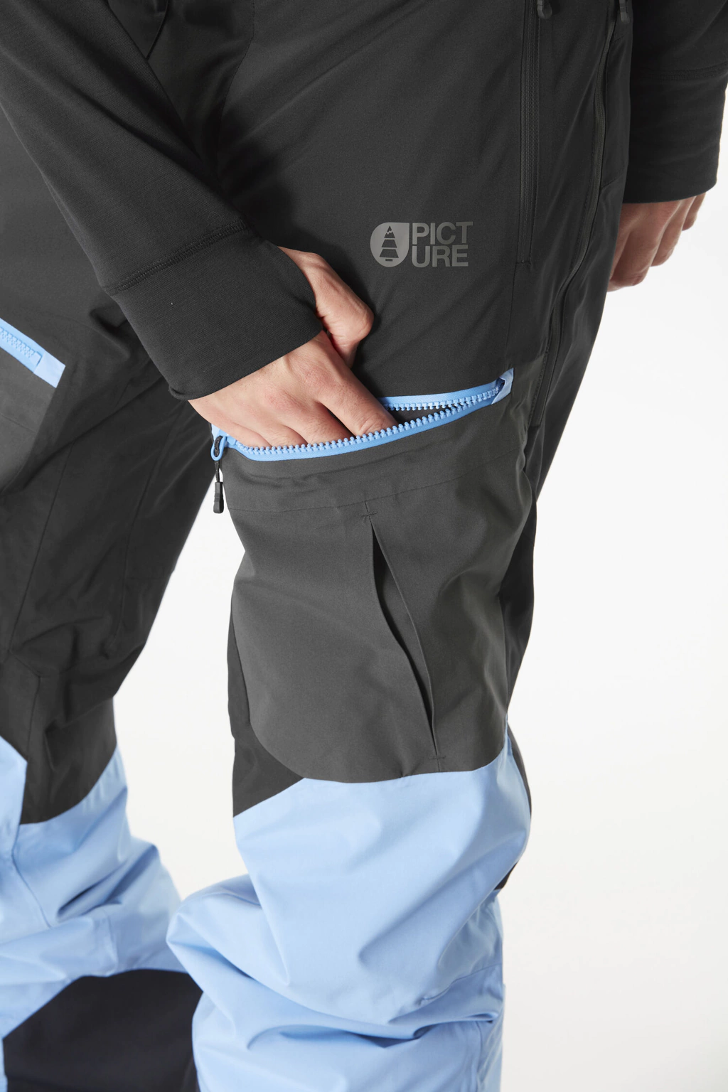 Bolsillos en los muslos con cremalleras impermeables.
